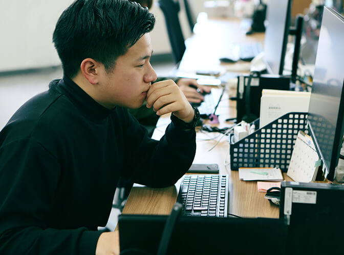 実際の業務を想定した課題を開始します。その後は、配属先の先輩のもと業務を進めていき、習得状況に応じ徐々に業務をお任せしていきます。