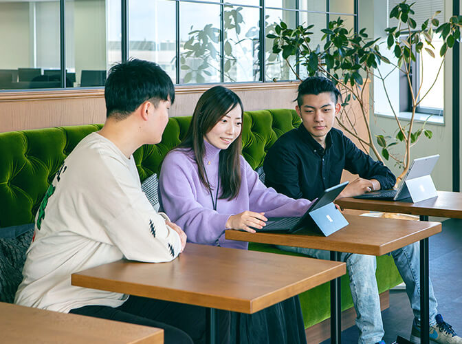 未経験の方でも確実に習得いただけるプログラムに加えて研修期間も長期で設けていますのでご安心ください。また、新たな業務にチャレンジする環境も整っており、長期的なスキルアップ・キャリア形成も可能です。